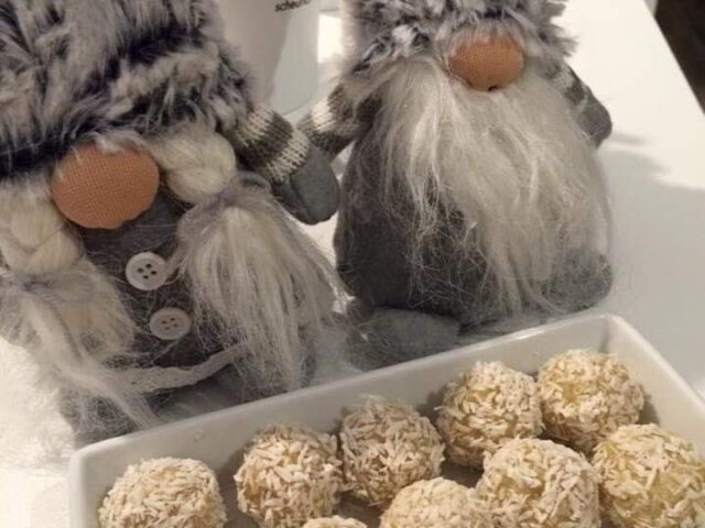 100 g võid 200 g kondentspiima suhkruga 150 gr kookoshelbeid- sellest 50 gr veeretamiseks 100 g toorjuustu 1 spl mett 50 g vaniljevahvlit 50 g mandleid mida kergelt röstida kuumal …
