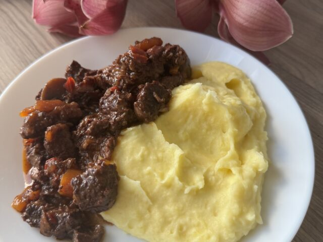 SoolaneTükelda liha, sibul, küüslauk, sampinjonid ja peekon. Pruunista pannil kõik koostisosad eraldi ja vala potti. Veiselihale lisa soola ja pipart kui on pruunistatud. Suuremad sampinjonid lõika näiteks neljaks ja pruunista …