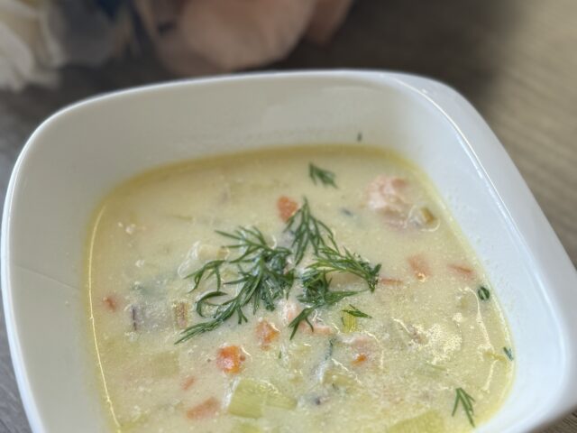 SoolanePane külma vette keema lõhefilee. Mina lisasin 1 tl soola, et lõhe maitsestuks. Korja ära vaht. Kui vahtu enam ei tule siis tõsta lõhe välja ja kurna läbi sõela saadud …
