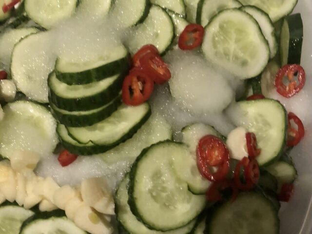 3 kg kurke 400 g suhkurt 220 g soola 700 g vett 150 g äädikat 2 tsillikauna koos seemnetega suur peotäis tilli suur peotäis küüslauku Viiluta kurgid, seda kõik komponendid …