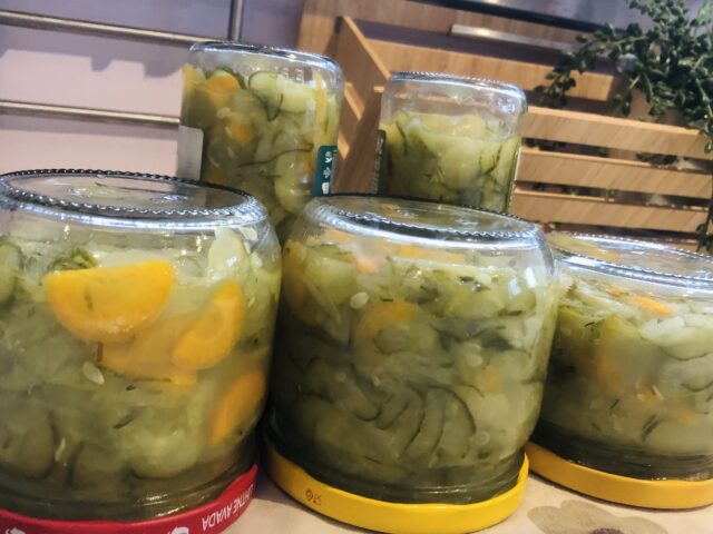1 kg kurke 300 gr sibulat 200 gr porgandit 15 g tilli 1,5 spl soola 0,5 spl suhkurt 2 spl äädikat 35 g õli Viiluta kurk, sibul ja porgand. Mina …