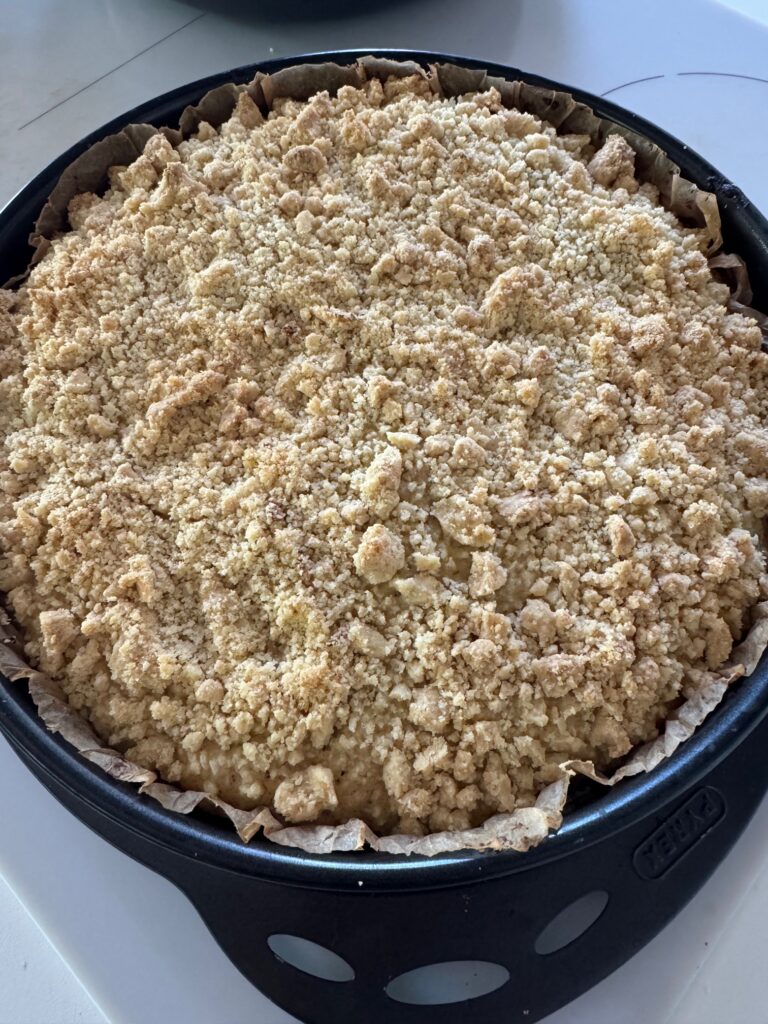 Järgmiseks näpi puruks 60 g suhkurt, 200 g jahu ja 100 g võid ja pane kohupiima segu peale.