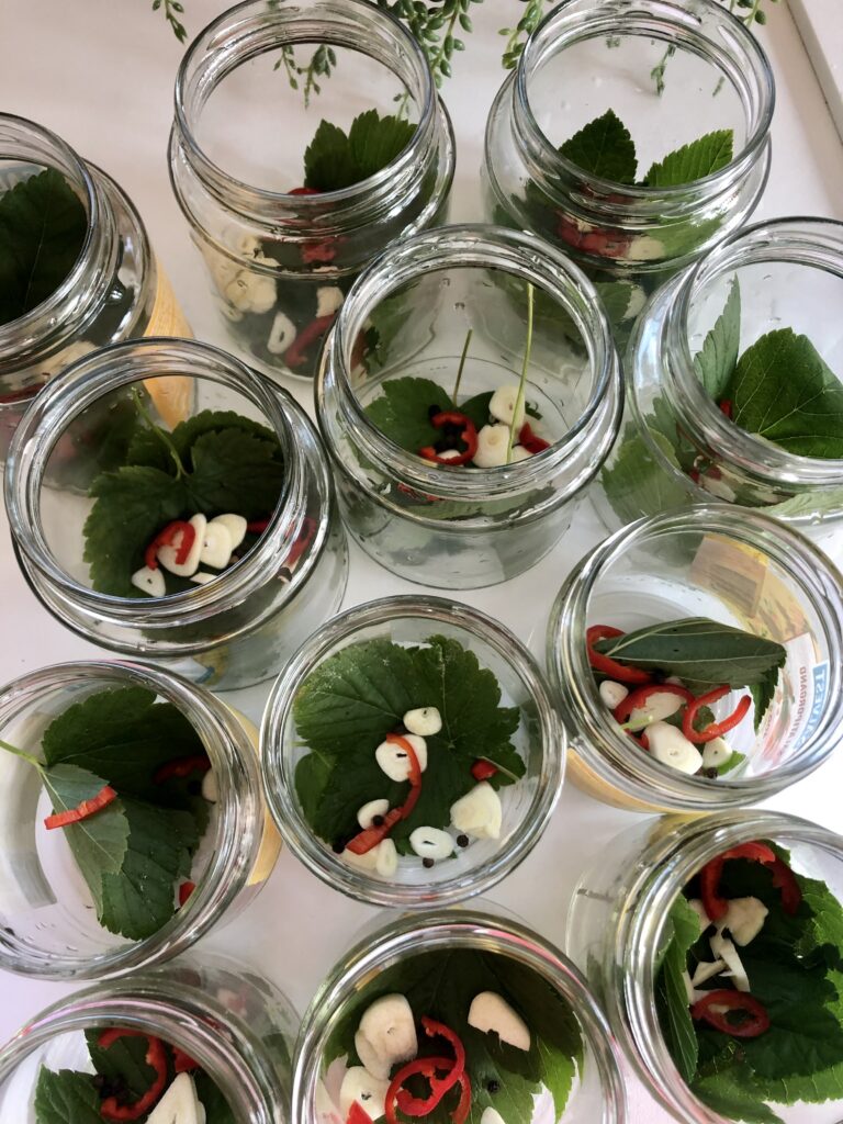 Ühe purgi kohta mina panin väiksema küüne küüslauku, kaks mustsõstra lehte, tilli paraja nutsukese, chillit mõned viilud, pipart 5-7 tera.