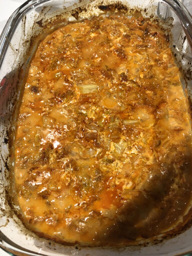 Pane ahjupotile kaas peale ja küpseta 200 kraadi juures umbes 40 minutit. Võta pott ahjust ja sega läbi. Vala peale vahukoor ja küpseta veel 2 minutit.